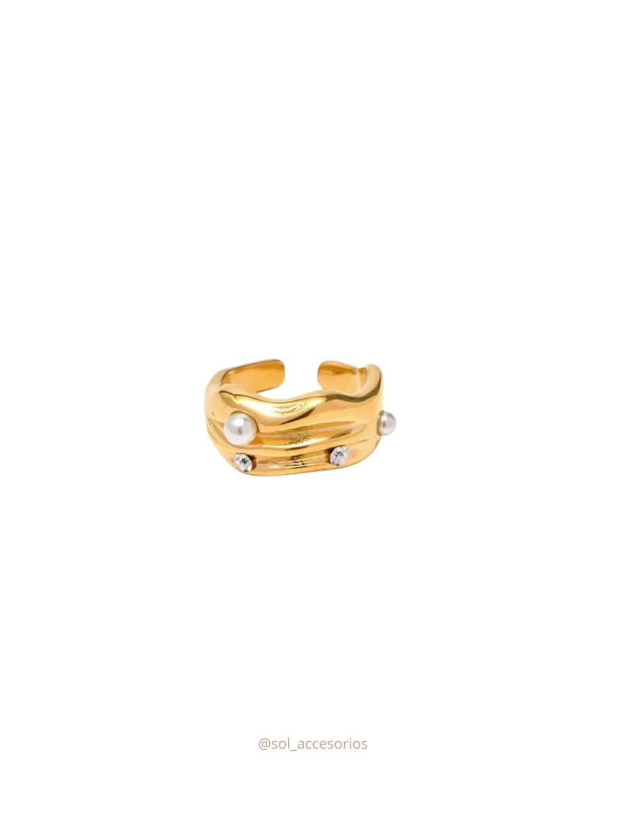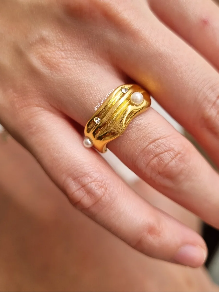 Anillo con detalles de brillos y perla.