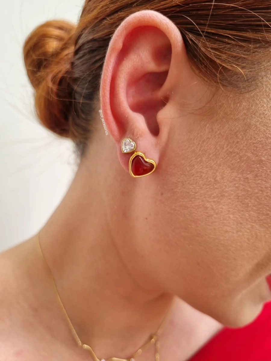 Nuestro set Rubi, hermosos corazones con aplicaciones de nácar, para llevar con nosotras un pedacito de felicidad. Elaborado en cobre con baño de oro de 18k. Lo recibirás en un lindo empaque que puede ser utilizado para conservarlo por más tiempo.